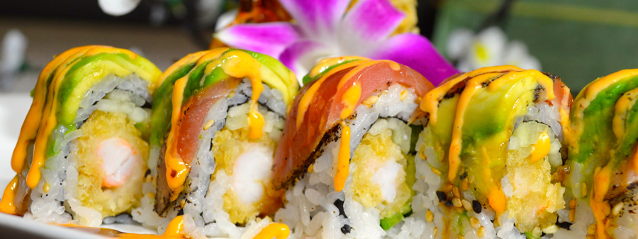 Ebi tempura, Queso Crema, Aguacate y salsa de Miel y Mostaza